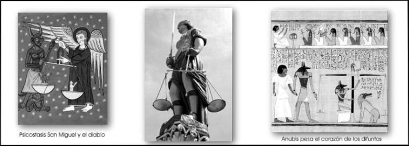 justícia, pesa el cor del difunt, i decideix el seu futur en el més enllà, també es troba representada en els judicis dels antics